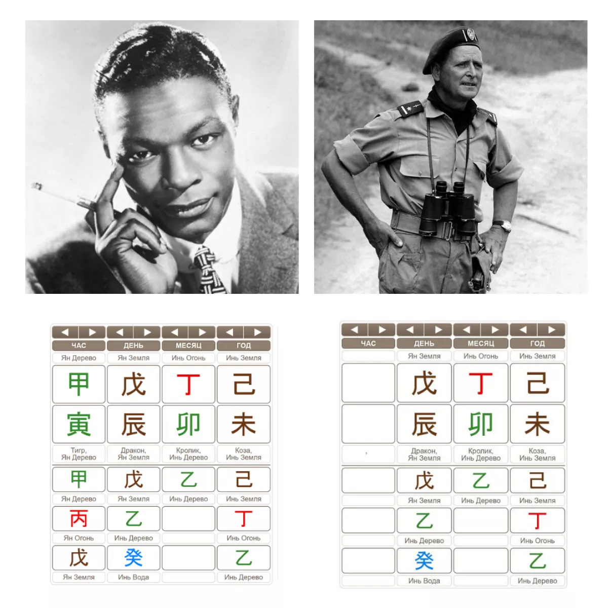 Очень интересно, когда есть 2 таких ярких примера жизни известных людей с одной датой рождения) И как их разный подход к здоровью при похожих, с точки зрения Бацзы, стартовых данных, сказался на продолжительности жизни. Разница в 2 раза впечатляет. А наемник, доживший до 100 лет - звучит просто фантастически. Конечно, час рождения тут очень важен.