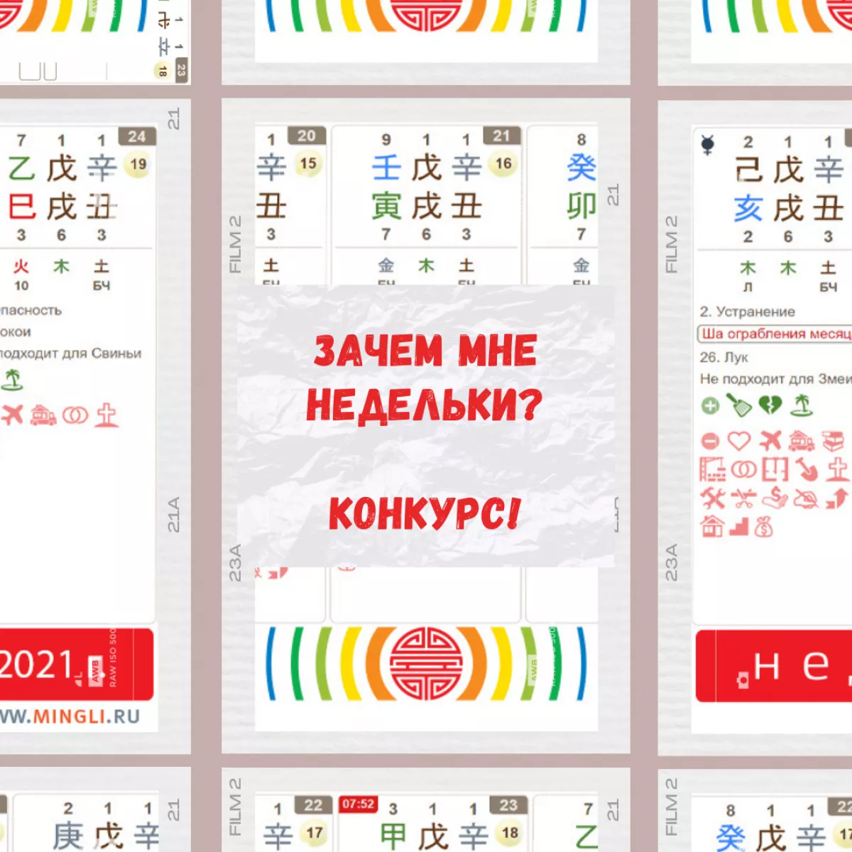 К тому, что Выбор дат – это важно, я пришла не сразу. Сначала просто читала Недельки, не особенно вникая в детали. Потом стала учитывать неблагоприятные влияния: Три Ша, Дни без богатства, Дни с низкой Ци, Дни болезней, Дни потери, Дни разрушителей. Появилось ощущение, что «жить вообще запрещено». Тогда начала искать Благоприятные дни и разбираться, что означает каждая Неблагоприятность. Читала Недельки и пыталась сопоставлять приходящие энергии со своей картой и думать, как они взаимодействуют. Результат пока не впечатляет, но на стене ежедневно сменяются дни.