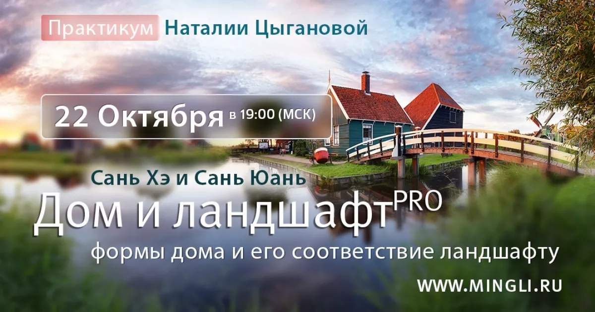 И вот в эту пятницу, 22 октября, будет очередной вебинар, как вписать дом в ландшафт, пользуясь принципами Сань Хэ. Для чего? Для того, чтобы дом максимально мог использовать ту ци, которая есть в пространстве.