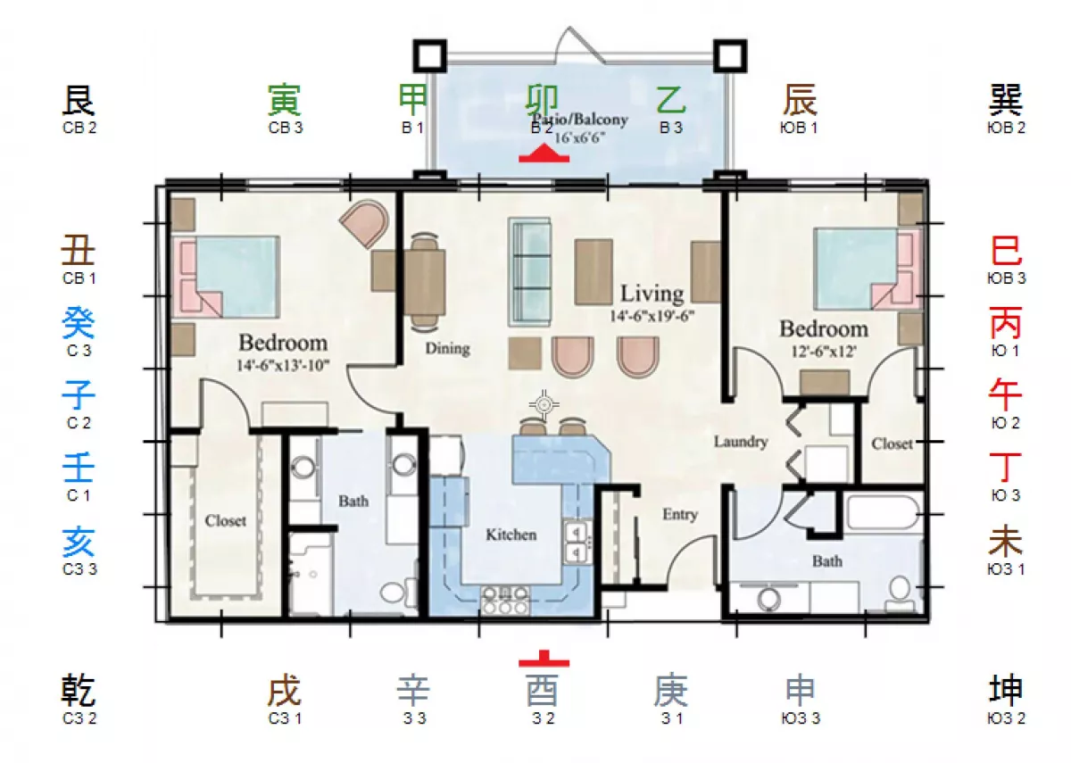 А дальше надо смотреть, для чего вы ищите тыл. Для 24 гор берется тыл дома, измерения универсальной ци (1,5-2 метра от двери, чаще всего совпадает с направлениями обычных сторон света).