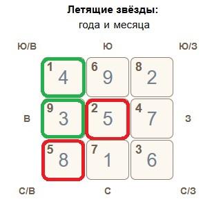 Север. Месячная комбинация может дать тягу к романтическим приключениям, притянуть сплетни, будьте осторожны с флиртом, могут быть не самые приятные заболевания. Также у тех, кто здесь долго находится, могут быть заболевания горла, пищевые отравления, осторожнее с алкоголем. Можно тоже поставить для коррекции сосуд с соленой водой. Эта звезда любит, когда занимаются метафизикой, так что можно пойти на какие-то курсы, изучить новое в этой теме. Сектор хорош для тех, кто выступает на публике. Если у вас здесь спит подросток, то его может потянуть во взрослую жизнь.