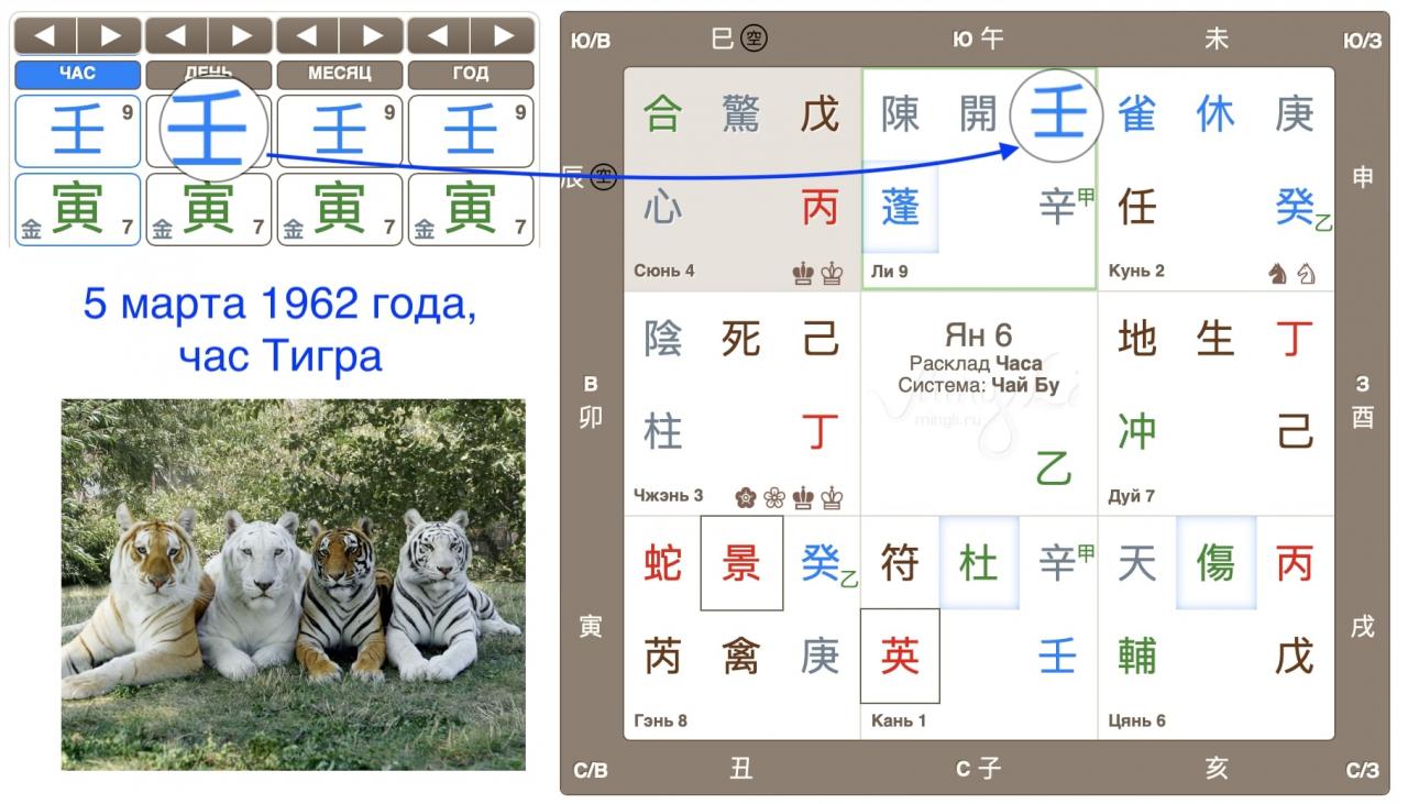 Даже при внешнем сходстве 4-х столпов судьбы 1962 и 2022 годов, новорожденные «тигрята» 2022 будут учиться бежать, лететь, покорять мир по своей лоцманской карте ци мэнь дунь цзя. Устремления могут быть схожи, но способ реализации только свой.
