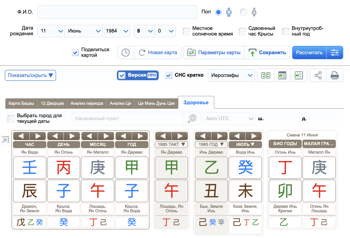 В Китае параллельно друг другу развивалось много разных школ бацзы. Они делятся на две группы – те, кто используют солнечно-лунный календарь и те, кто считает бацзы по лунному календарю. У нас в калькуляторе реализована версия с солнечно-лунным календарем. Эта школа считается одной из традиционных, классических школ бацзы.