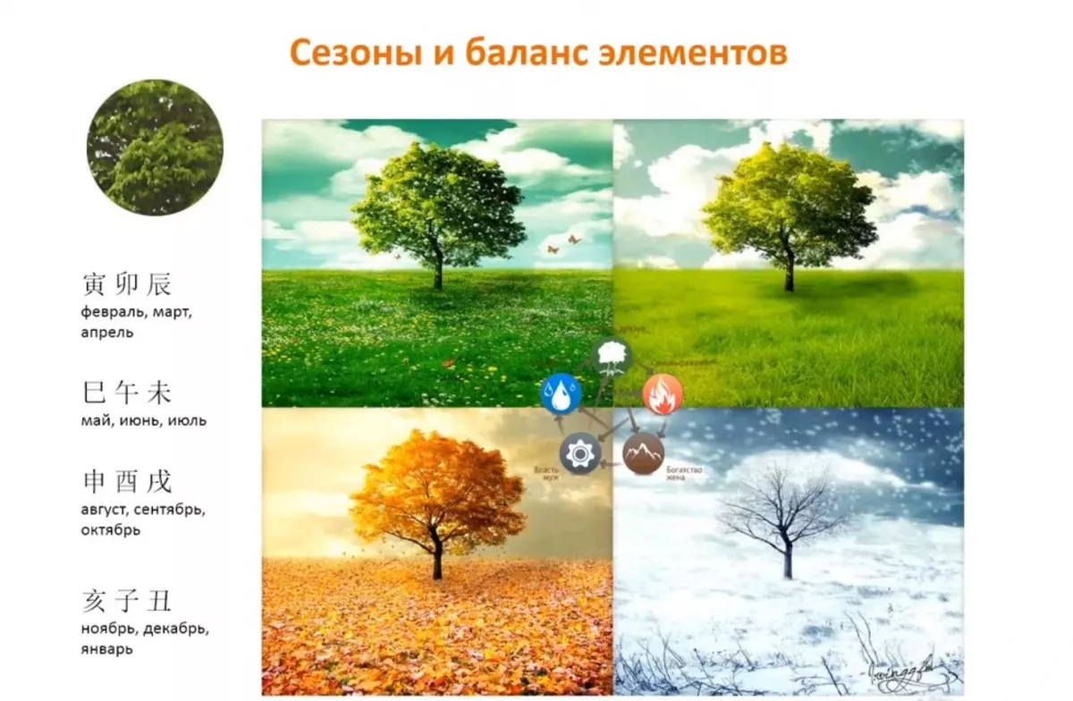 Для чтения карты бацзы очень важно, в каком месяце человек родился. Чтобы сделать первые шаги в понимании, что же полезно для Господина Дня, нужно «нарисовать» картину – как чувствует себя элемент в определенный сезон.
