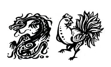 Дракон и Петух. Один подчиняется природе своих инстинктов, импульсивен и непредсказуем. Другой методичен и работает как часы (как живой петух в природе, который каждое утро встречает криком восход солнца). Дракон означает нашу амбициозность и врождённую интуицию, а Петух – нашу несгибаемость и методический подход в достижении целей. Если вы слушаете только свою интуицию и не задумываетесь о системности, то вас можно назвать импульсивным и безрассудным человеком. И, наоборот, если вы неподатливый человек без способности понимать нюансы, то вы сами себя консервируете во времени и не поддаётесь изменениям. А только изменения – действительно постоянная величина в этом мире.