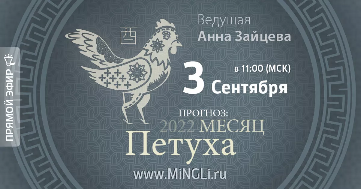 Тема эфира: «Бацзы: прогноз на месяц Петуха (сентябрь) 2022 года»