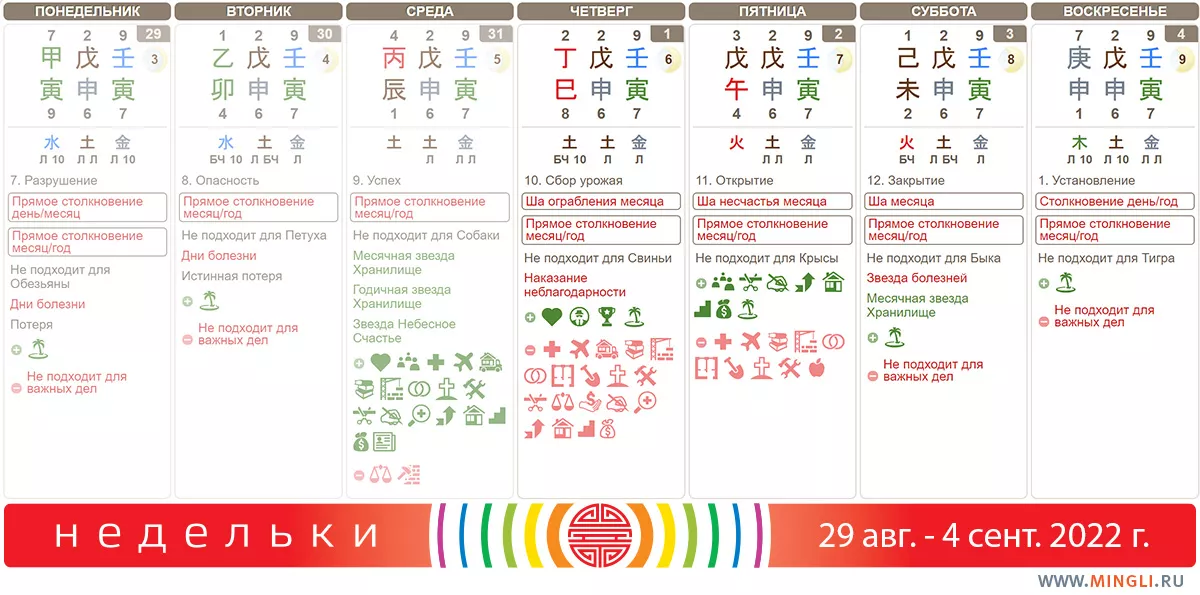 2 сентября, пятница. Хороший день за небольшим исключением – не стоит начинать лечение. Очень благоприятен для свадьбы, начинания бизнеса и проектов, путешествий, переезда в новый дом. Действия в этот день принесут хорошую удачу и богатство, благородных помощников, собственность и здоровье семье в течение 60-120 дней. К Крысам по году рождения вышеперечисленные бонусы, к сожалению, не относятся.