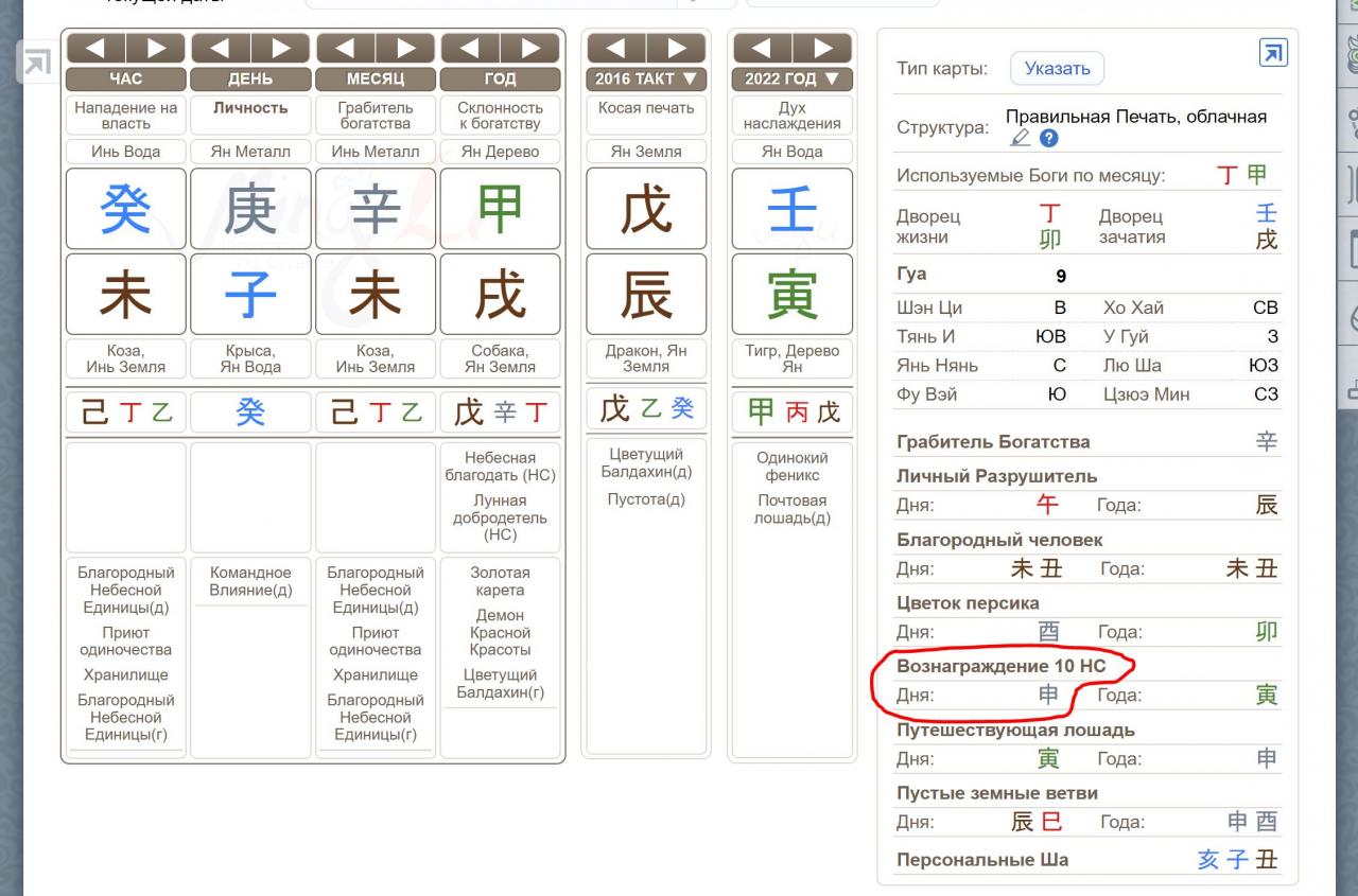 Зайдите в калькулятор Бацзы на Минли и рассчитайте свою карту бацзы (введите дату и место рождения). Посмотрите в табличку с основными символическими звездами и найдите там Процветание 10 небесных стволов по дню.