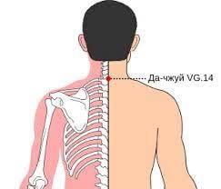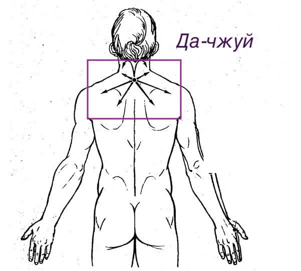 Эта секретная точка получила название Да-чжуй. Точку определяют в положении сидя со слегка наклоненной головой.