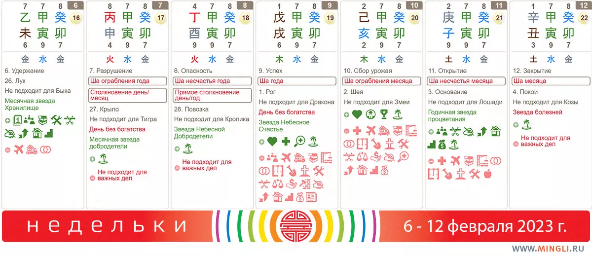 7 февраля, вторник. «Если выбрать этот день для важных дел, то это может вызвать скандалы и любовные измены в течение 3-5 лет», – так пишут уважаемые китайские источники. Но мы бы и так этот день не выбрали, правда? Столкновение, ша ограбления, день без богатства… В первую очередь, не стоит сегодня решать финансовые вопросы, подписывать документы и отправляться в путь. Возможно обострение аллергий. Янском Огню, а также тем, кто родился в дни Земли, нужно внимательнее отнестись к здоровью, иммунитет снижен. Если же в вашей карте Бацзы есть Тигр и Обезьяна, то проявите большую аккуратность во всем, где возможны конфликты, ошибки и травмы.