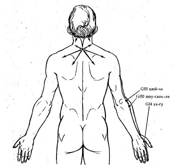 Точку Р-10 на меридиане Легких массировать в течении 30 секунд. Точку LI 4 Хэ-гу массировать в течении 1 минуты.