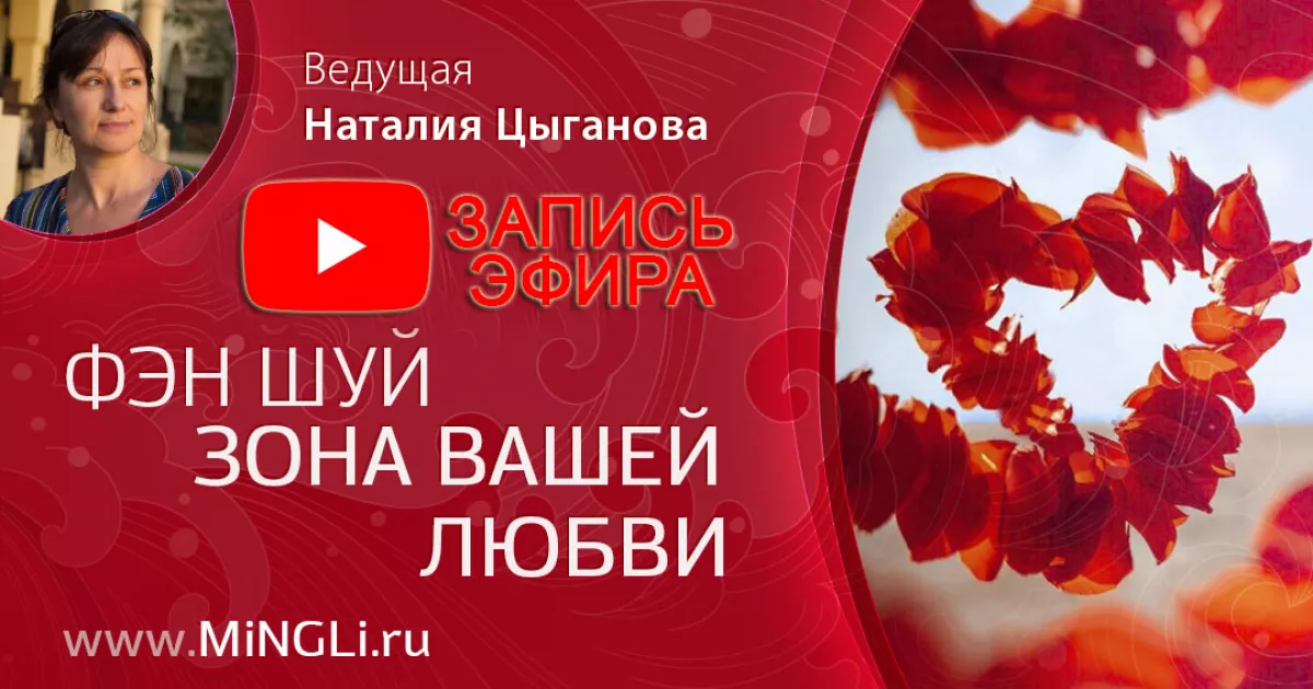 Видео эфира Наталии Цыгановой «Фэн Шуй – зона вашей любви» (фэн шуй и любовь, зона любви в фэн шуй)