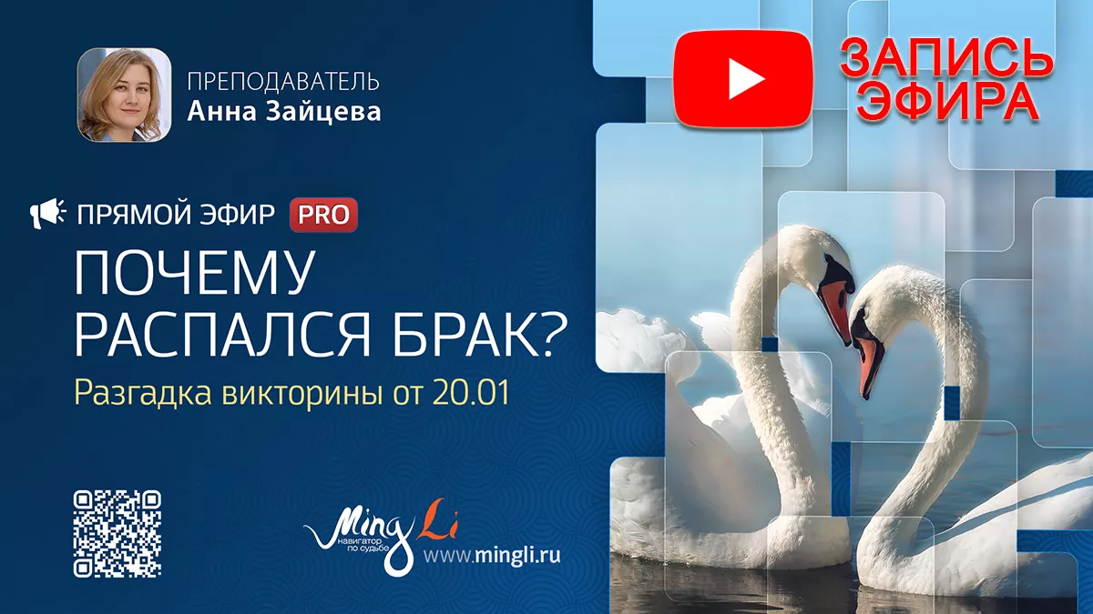 Видео эфира ««Почему брак распался? Разгадка викторины» (брак бацзы, причины развода бацзы, гороскоп развод)