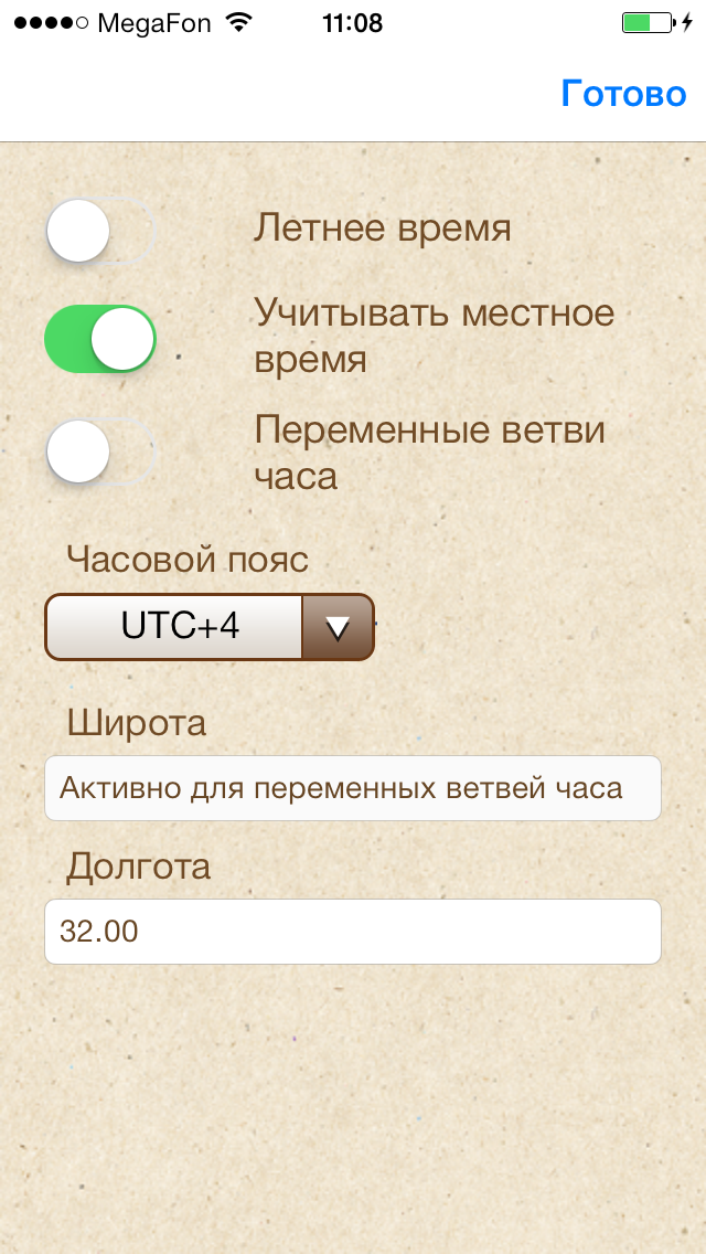 Примерно 6 мес назад установила платную версию альмонаха на iPhone5, сама проживаю в Екатеринбурге. Время устанавливаю, как предлагает программа, но часы остаются действительны для мск. Писала 2 раза обращение через обраную связь в программе, но без ответа.