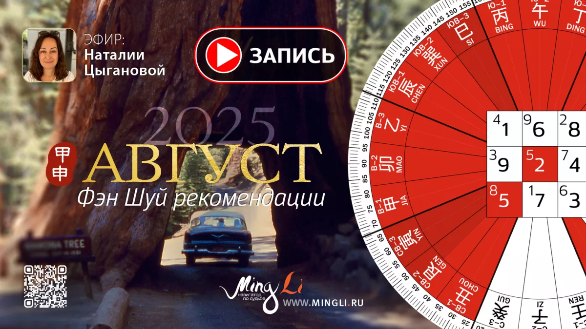 16 июля 2025 состоялся прямой эфир с Наталией Цыгановой на тему «Фэн Шуй рекомендации на АВГУСТ»