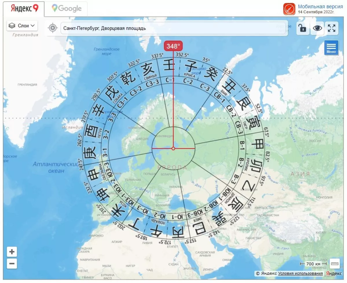 Давайте посмотрим, чем нам может помочь этот инструмент. С его помощью мы можем, не выходя из квартиры, определить, как ориентирован относительно сторон света любой дом в любом городе мира. И не только определить его направление, но и прикинуть, какая карта Летящих звезд может быть у этого дома!
