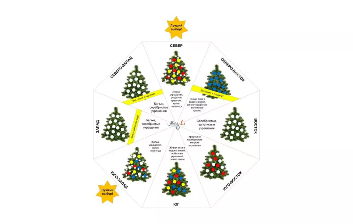 3. Можно ли елку украсить игрушками ЮЗ-ого сектора или, потому что она будет в северном секторе по малому тайчи, ее нужно украшать как елочку на Севере? ))))))