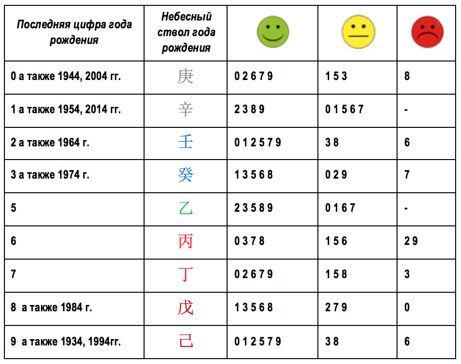 Между тем, у человека, родившегося в год, заканчивающийся на 6, хорошие отношения и с тем кто рожден в годы на 0, и с другим, кто рожден в годы на 3. Смотрим столбик таблицы с зеленым улыбающимся смайл.