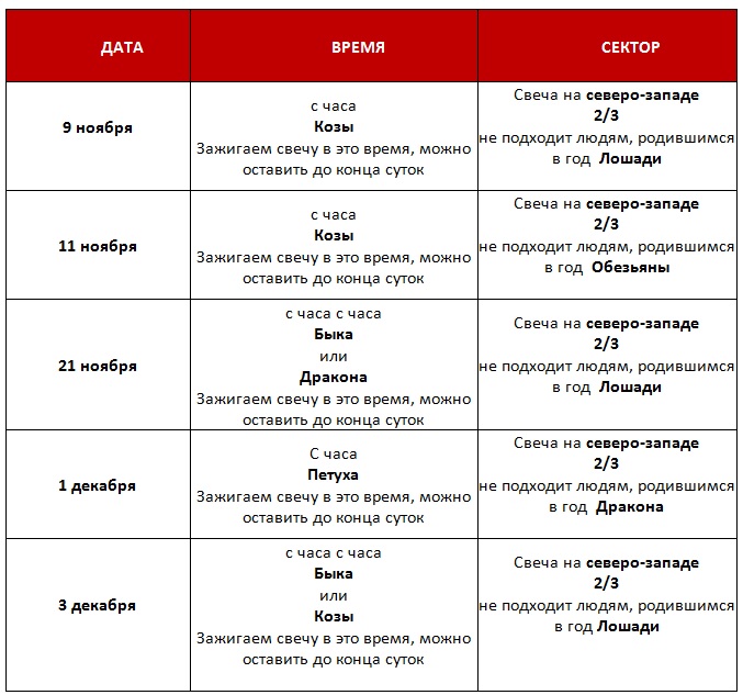 Фэн шуй прогноз на ноябрь 2017
